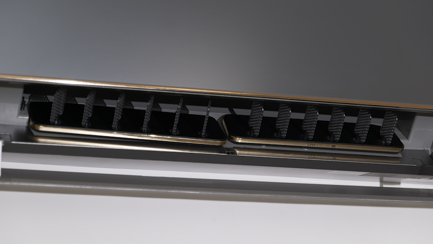 而正在制冷模式下,活动大导风板会从动翻转,双机械臂完全展显露来,做到了126°广角天然风送风,阐扬出双机械臂驭风系统的最大功能——按照数据,其舒服送风面积是保守空调的6。6倍,并能将整个空间的平均温差节制正在±0。5°C。此外,X-Wind50空调内置了大尺寸风轮,实现了800m³/h大轮回风量以及8米超远送风距离,并利用了Φ7mm大曲径全铜管冷凝器,连系全铜管蒸发器取超导金色翅片,能做到20秒速冷、30秒速热。