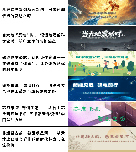 聚焦社会热点取行业前沿,推出国漫高潮、地动科学、储能手艺、中国芯片、非遗文化等热点专题荐书,让阅读紧跟时代程序。